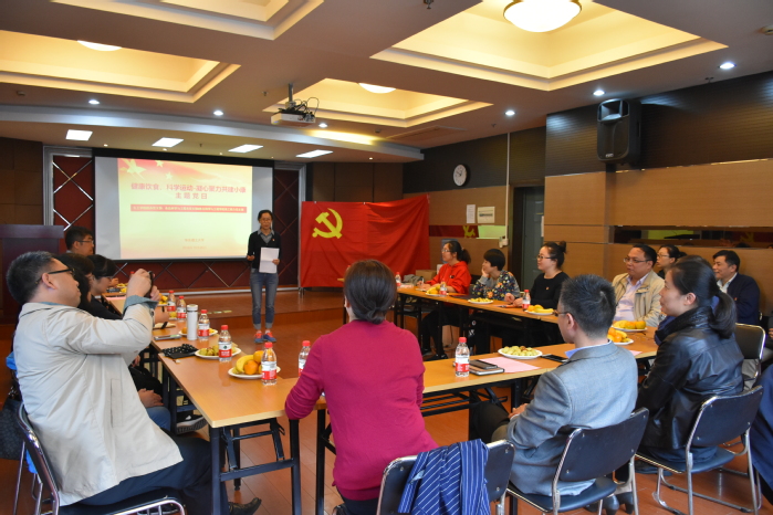 活动伊始,食品系周英同志的“健康饮食”微讲座为活动拉开序幕,报告贴近生活、生动有趣,阐述了饮食与健康的密切联系。接着,体育学院陈婧同志“高校教师健康状况及职业病预防”的专题报告,动静结合,结合视频为党员们现场指导《八段锦》健身操的练习。姚文、陆兵对本次活动进行了点评,希望建立长效机制共同探索更多途径为满足人民对美好生活的需要不懈奋斗!