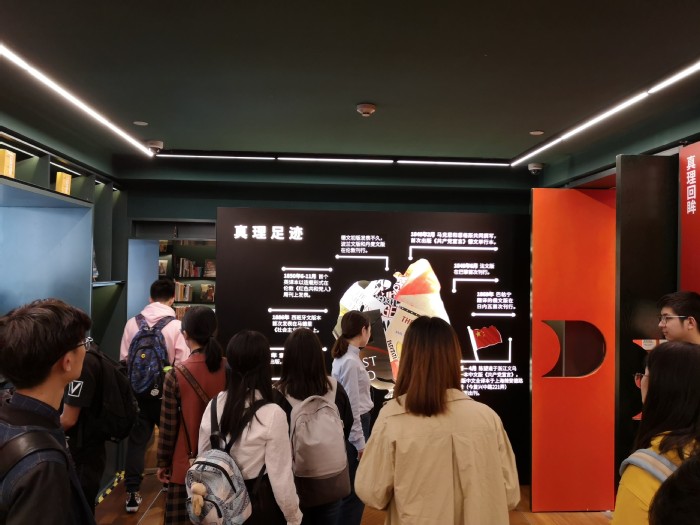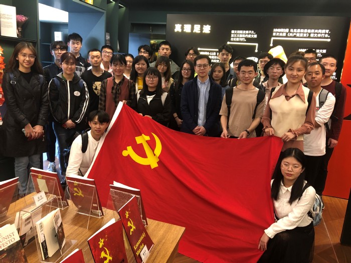 位于上海市复兴路的思南书局正在举办“新中国成立70周年暨上海解放70周年的主题展”,党支部师生们探寻了马克思主义诞生的历史过程和社会主义真理的足迹,回顾了2018年从布鲁塞尔到上海—纪念马克思诞辰200周年、《共产党宣言》发表170周年的主题展。阅览了《共产党宣言》的诸多珍稀版本、多语种版本、马克思主义经典以及当代马克思主义的新成果等众多书籍。师生们也观看了解放上海以及上海战后工业重建等方面的图片,从而直观地了解了70年来上海的历史蜕变,这也是新中国成立70年来伟大发展的一个缩影。