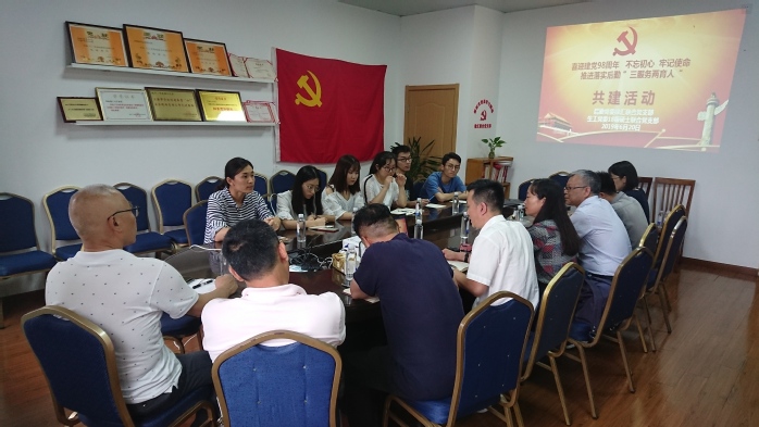 6月20日下午,我院党委18级硕士联合党支部与后勤党委徐汇联合党支部以“喜迎建党98周年,不忘初心、牢记使命,推进落实后勤三服务两育人”为主题开展支部共建活动,双方支部的党员、发展对象、积极分子、学院研究生辅导员孙希彤以及后勤党委副书记兼后勤保障处副处长杨雅伟、应邀参加本次活动。