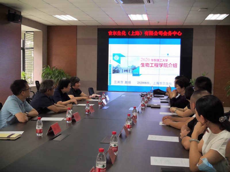 8月11日,生工学院院长庄英萍携应用生物学系主任吴海珍、生物工程系主任白云鹏等一行五人来到位于紫竹国家高新技术产业开发区的吉尔生化(上海)有限公司进行实践基地挂牌与交流。公司董事长徐红岩先生、总经理周敏女士、我校校友现任销售总监的魏欣先生及各部门主管等出席基地挂牌仪式与交流会。