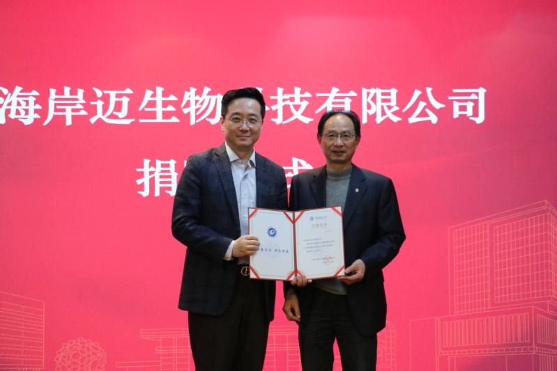 校友吴辰冰创建的上海岸迈生物科技有限公司是一家创新型国际化生物技术企业,在上海和苏州分别设有研发中心和GMP生产基地,专注于利用自主知识产权的双特异性抗体技术平台FIT-Ig®进行创新生物药的研究和开发。FIT-Ig®技术平台能够通过分子生物学手段将两个单抗序列糅合在一起形成一种结构独特的双特异性抗体,具备很高的产业化效率,并因此项技术荣获科技部举办的第六届中国创新创业大赛生物医药组全国总决赛一等奖。基于FIT-Ig®平台技术,岸迈生物正在针对肿瘤和其他临床需求高的领域进行双特异性抗体系列原创产品的临床开发。岸迈生物同时也在通过全球范围内的技术授权、合作开发等多种形式实现平台的战略发展和产品多元化布局。本次捐赠10万元。