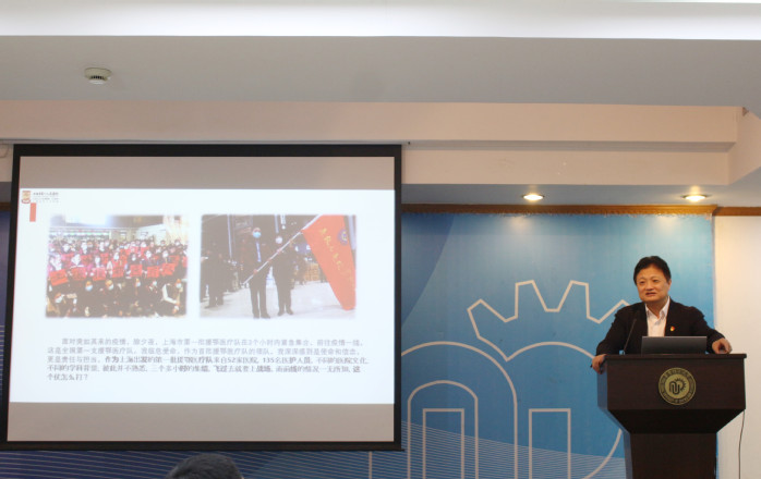 2021年5月12日下午,上海市第一批援鄂医疗队领队兼支部书记、上海市第一人民医院副院长郑军华教授莅临我校,在逸夫楼演讲厅给生工学院师生上了一堂主题为“在逆行路上冲锋——一线党组织政治引领凝心聚力,确保零感染完成使命”的生动党课。生工学院党委委员和29位教工及研究生党支部书记以及部分研究生代表参加了党课,党课由生工学院党委书记赵黎明教授主持。