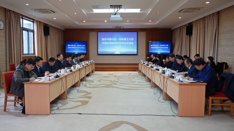 会上,李春忠介绍了华理事业发展情况,张川介绍了璧山区总体发展情况。我校bevictor伟德国际1946院长叶邦策和璧山区服务业发展区党工委书记、管委会主任聂源极分别介绍了中试平台项目前期洽谈情况,与会人员围绕项目具体合作事项进行了深入交流讨论。