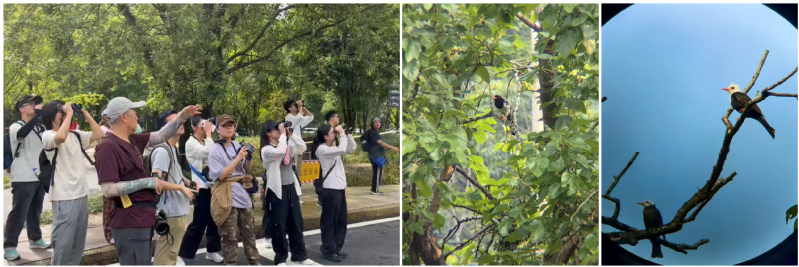 杨志栋老师带领同学们用双筒望远镜观晨鸟,深入溪谷等地全谱调查,体悟到野生鸟类相关协同演化关联,领悟生物多样性研究对动态生命现象的即时捕捉能力,以及对形态-行为-环境多维数据的系统性解构能力。