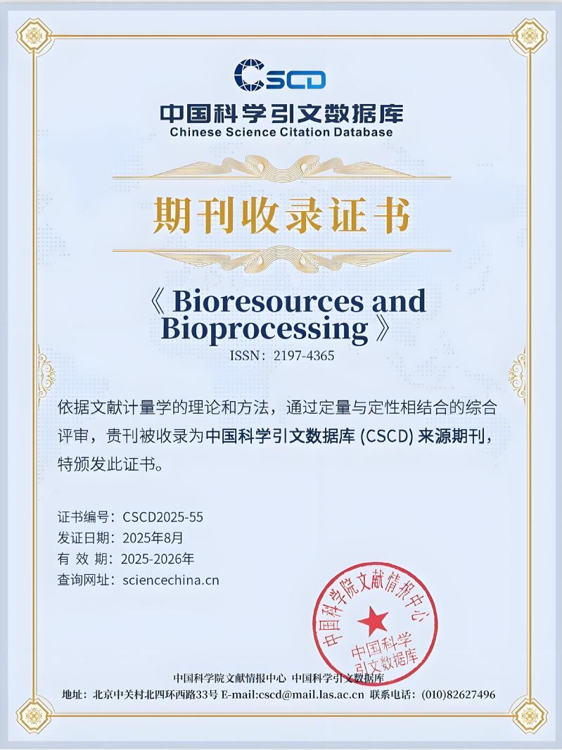 附:Bioresources and Bioprocessing 是由伟德国际1946生物反应器工程全国重点实验室与Springer Nature合作出版的英文学术期刊,ISSN为2197-4365,全面实行开放获取。目前已被SCIE、ESCI、EI、PubMed Central、DOAJ、Scopus、PMC、CSCD等重要数据库收录。2024年最新影响因子稳步提升至5.1,学科排名25/177,位列JCR Q1区,CiteScore达9.5。2024年入选中国科技期刊卓越行动计划二期入选项目,2025年荣获Springer Nature“服务影响力奖”。官网地址为http://www.bioresourcesbioprocessing.com。